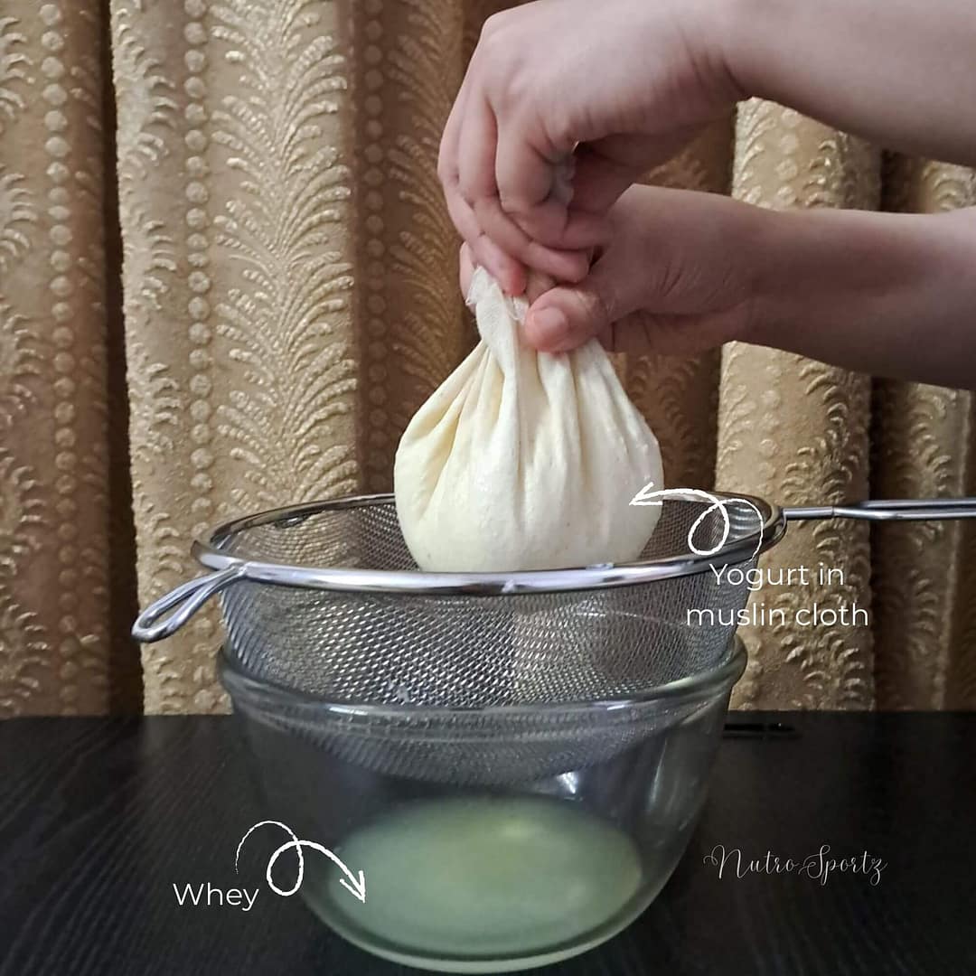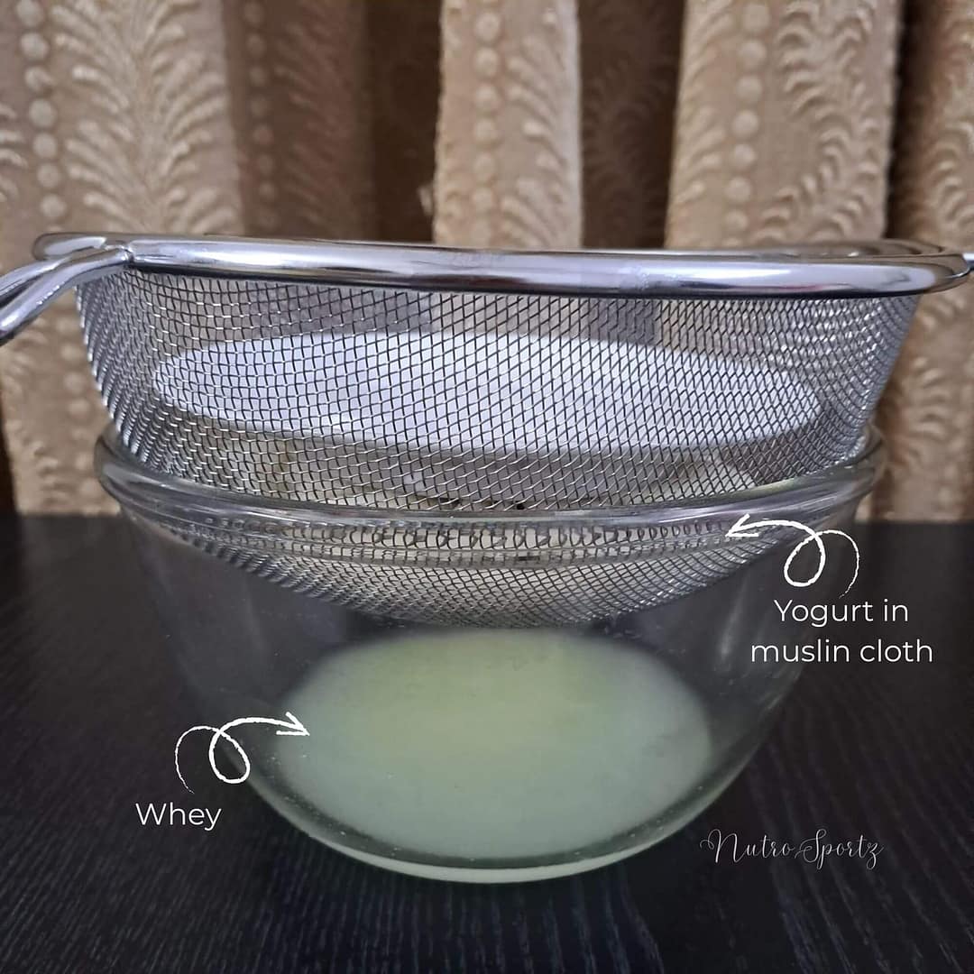- Transfer Greek yogurt to a bowl once all the whey is drained out.